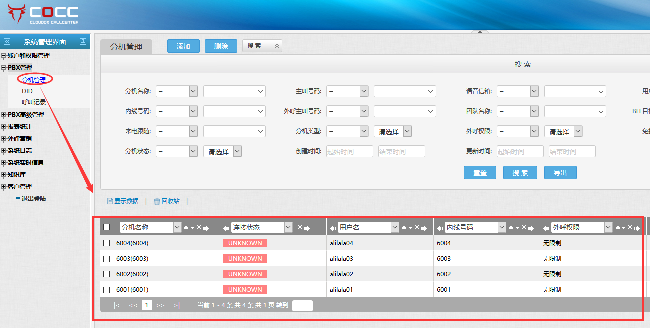 4.分机管理